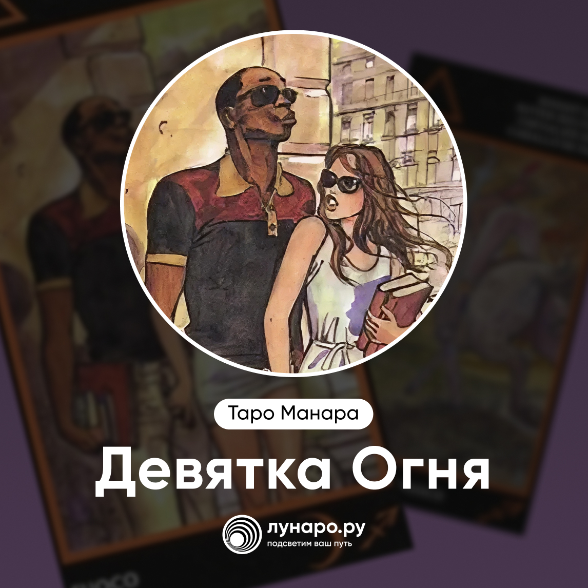 - Девятка Огня Таро Манара — свободные отношения между представителями разных социальных групп или культур. Симпатия, несмотря на традиции и нормы. Спокойствие, уверенность, беседы на умные темы и общие увлечения. Интим не основа этих отношений, но и не отрицается.