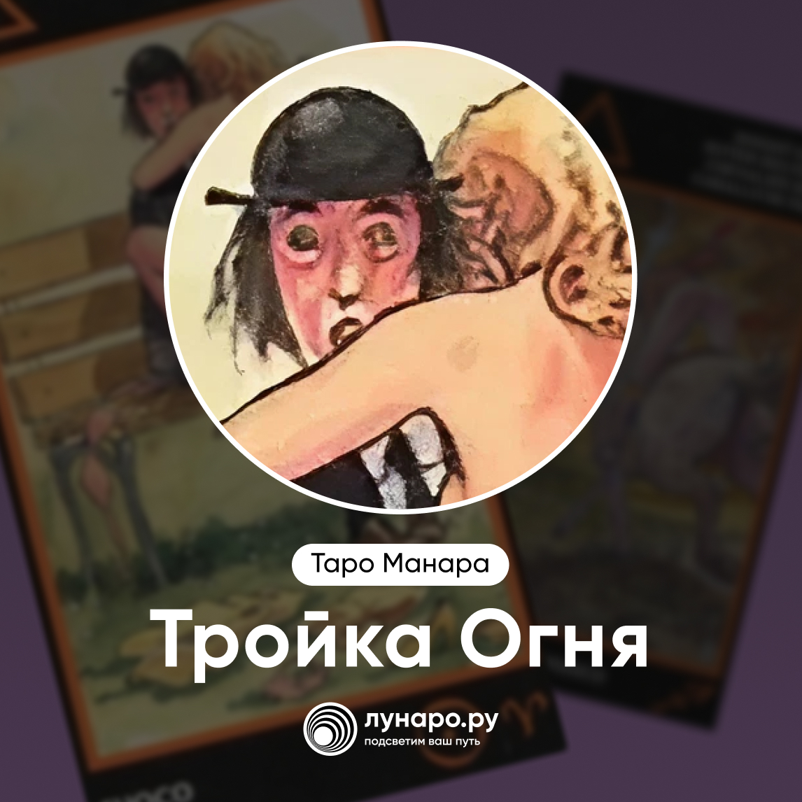 - Тройка Огня Таро Манара — неадекватные проявления своих желаний. Активность неуместна, но это не имеет значение, как и будущие последствия. Важны лишь собственные чувства и желание вызвать интерес у противоположного пола. Методы используются агрессивные, но перед такой открытостью мало кто может устоять.