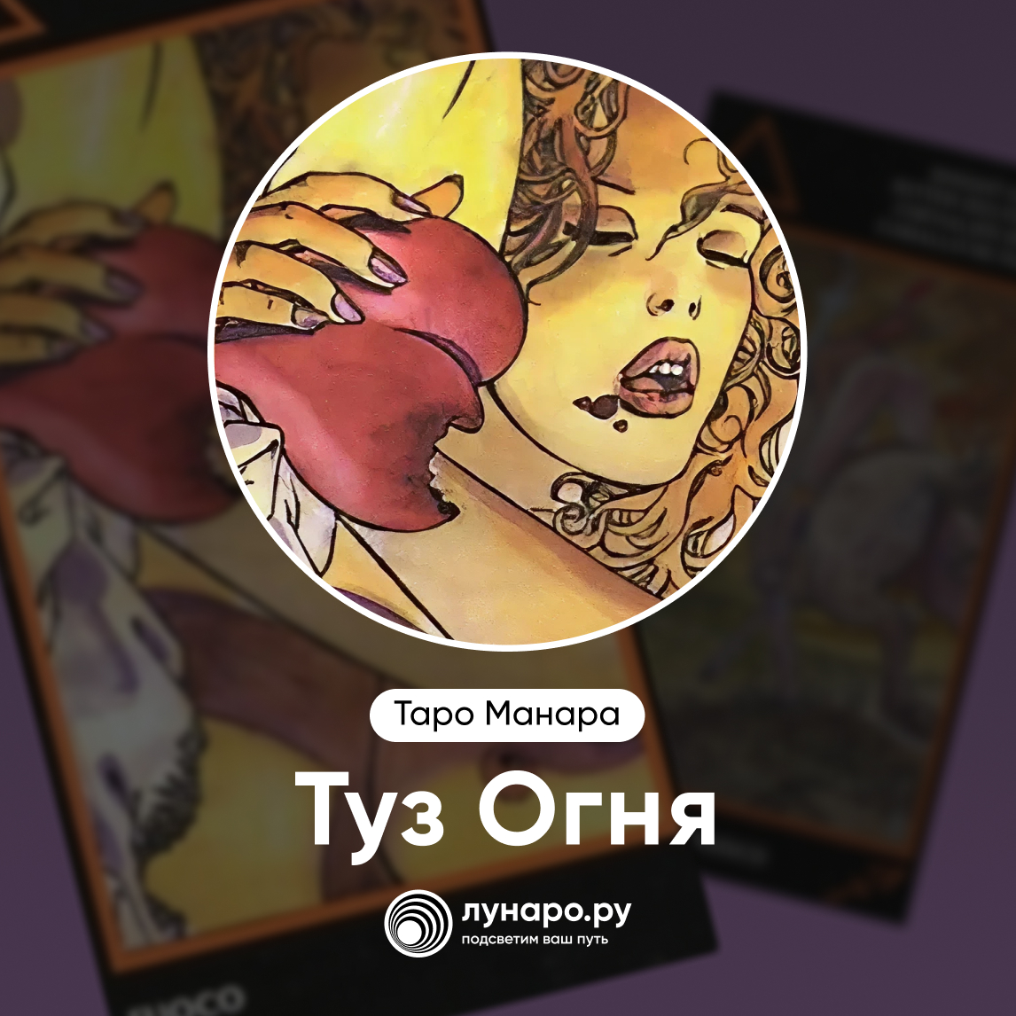 - Туз Огня колоды Манара — огромное количество сексуальной энергии, которая требует удовлетворения. Страсть невозможно сдерживать. Она выражается в чистом виде и всё подчиняет себе. Значение имеет лишь собственное желание, мнение других не учитывается.