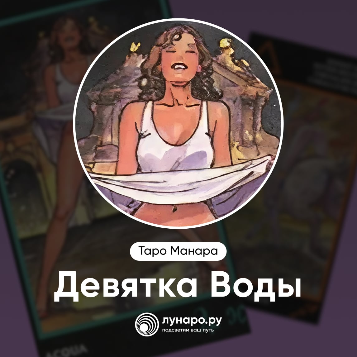 Девятка Воды Манара — это освобождение от старых эмоций и радость от ощущения лёгкости. Также карта показывает уверенность и искреннее отношение к себе.