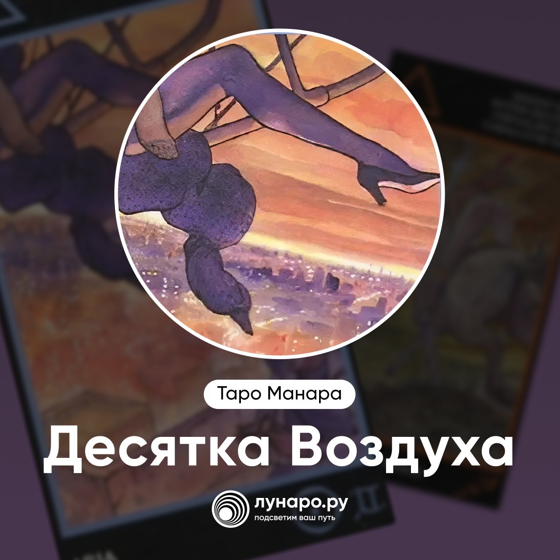 - Десятая карта Воздух Таро Манара — значение непостоянство. Замкнутый круг из встреч, расставаний, возвращений. Всё хорошо, конфликтов и разочарований нет, но тяга к обновлениям не даёт усидеть на одном месте.