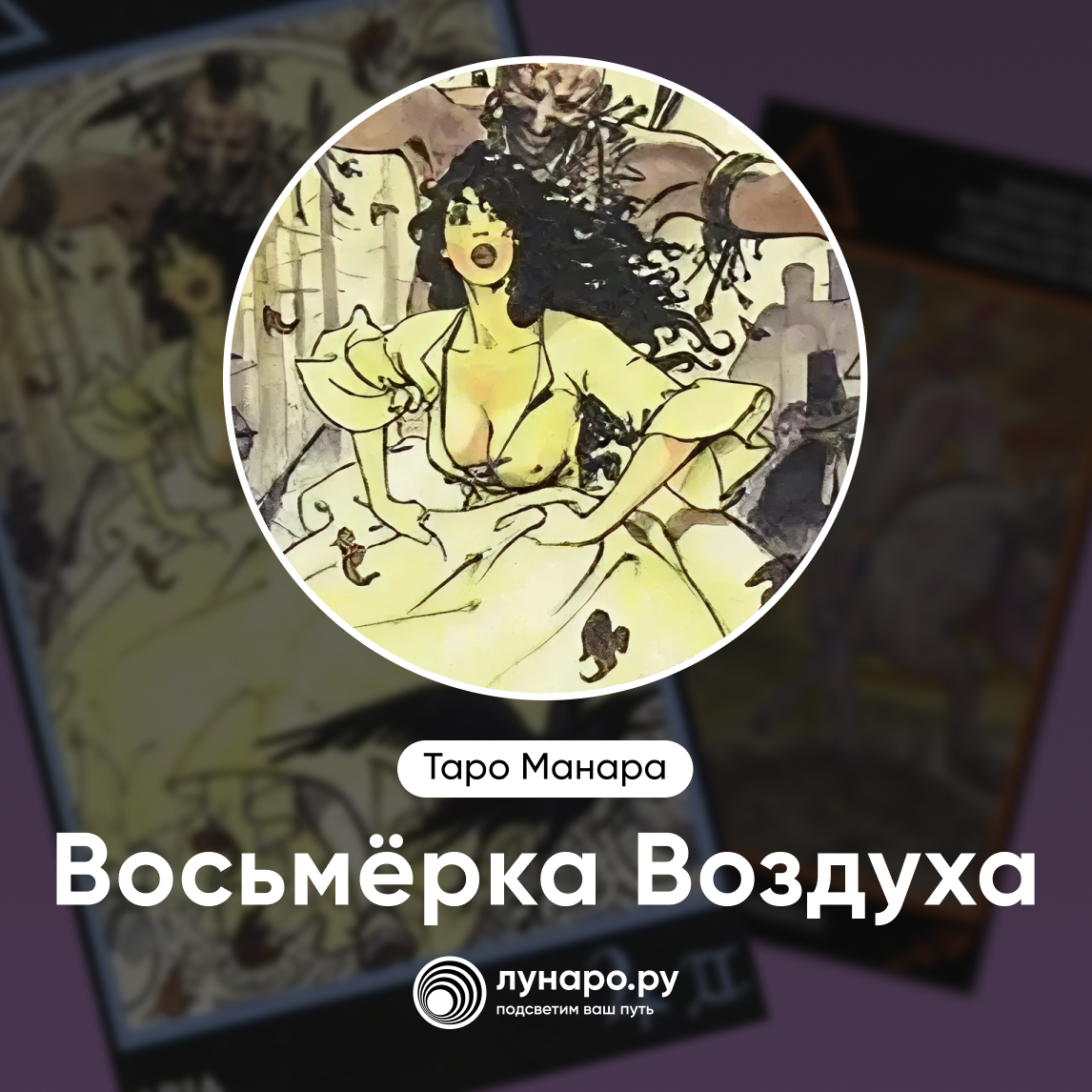 - Значение воздушной Семёрки Таро Манара — легкомысленное поведение и непостоянство. Заманивание своим образом, но без реальных целей и намерений — просто игра ради развлечения, нет никаких чувств.