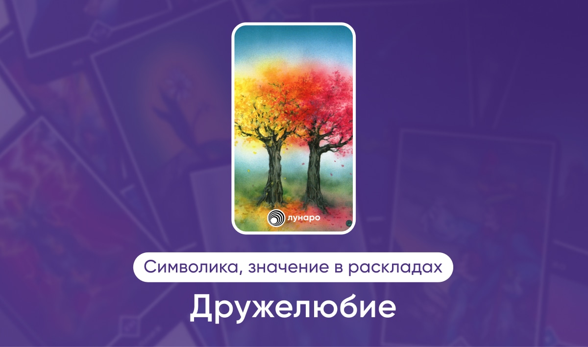 Дружелюбие — карта поддержки и двойственности. Её появление в раскладе говорит о том, что в ситуации участвуете не только вы. Конкретного срока реализации здесь нет, поэтому смотрите карты на соседних позициях.