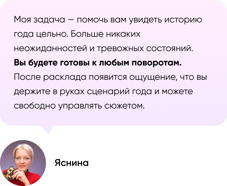 Вы получаете не просто прогноз, а персональное руководство на весь год — выстроенное специально под ваши цели, планы и мечты.