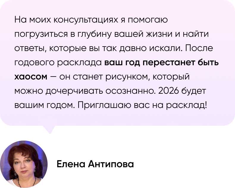 Получила расклад за месяц до Нового года — очень помогло понять, на чем сосредоточиться. Прошел почти год с расклада и я вижу, что все сбылось. Особенно про успехи в работе и личных проектах. Это сбылось почти сразу!